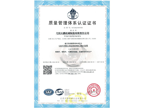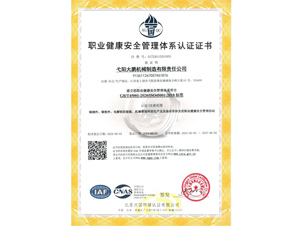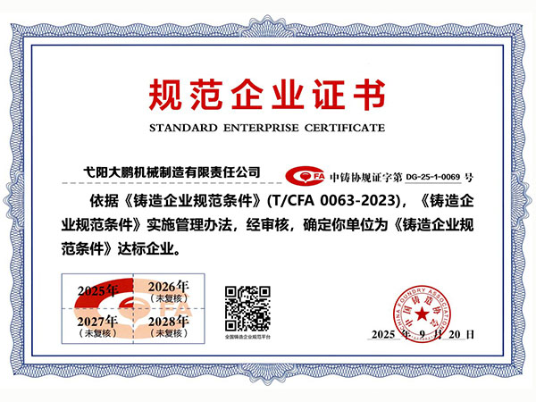 公司順利通過質量管理體系認證、環(huán)境體系認證、職業健康安全管理體系認證、環(huán)評。2015年5月獲國家工信委頒發(fā)的《鑄造企業準入條件》;2019年做了安全現狀評價;2020年取得了排污許可證。
